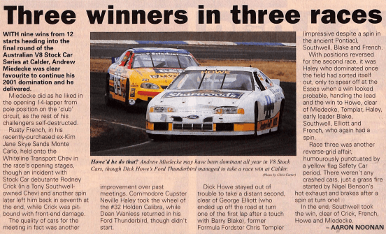 Round 5 – Winton – Qualifying and Round 5 2001 – won by Miedecke, French and Miedecke.