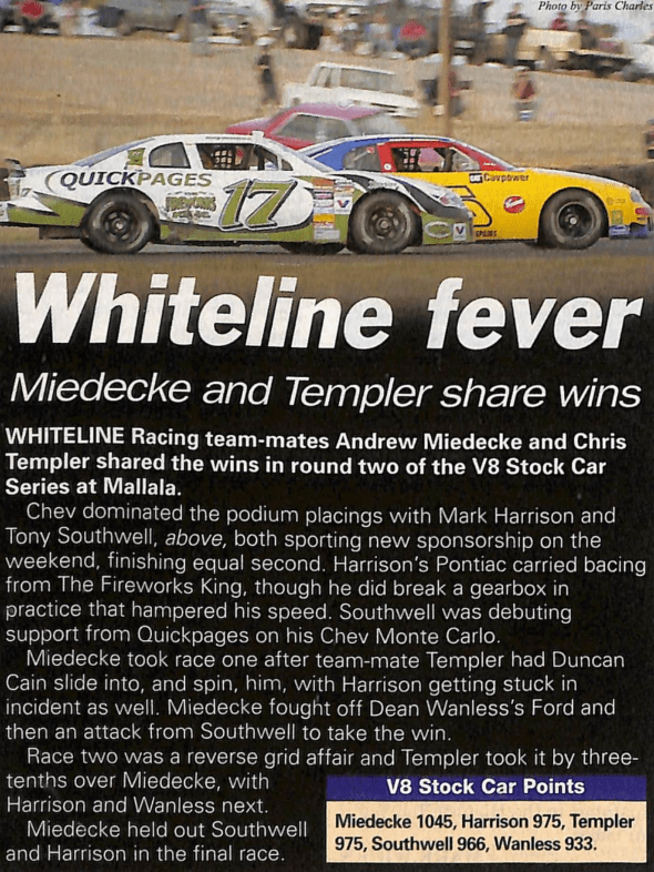 Here are results from the 2001 and 2002 V8 Stock Cars seasons.