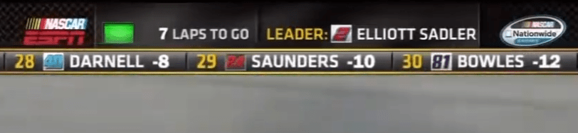 Scott Saunders raced three Xfinity Series races in 2012; he made his debut for Jason Sciavicco in the #24 Chevrolet at Iowa and finished in 28th position.