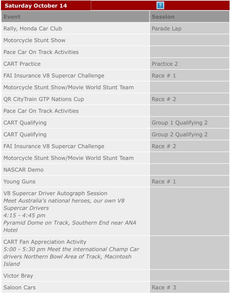 The actual end was on the Gold Coast on Saturday October 14 2000 when the category ran a demonstration.