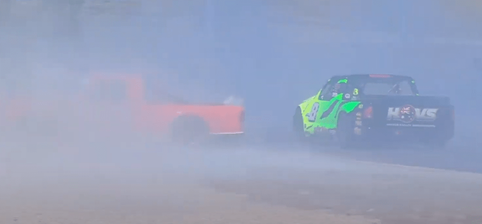 As Danny Burgess and Robert Marchese continued to battle for third position, Josh Hourigan was reeling the duo in and passed the #84 Silverado and set off after the #7 Silverado, it came down to the finish as the #11 reeled in the #7 at the line to take third by .1 of a second.