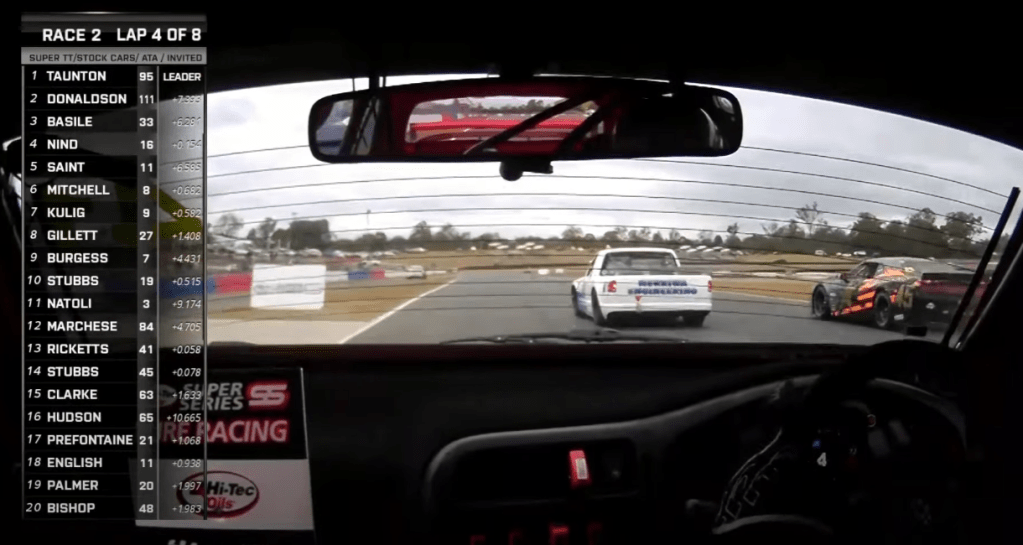 Scott Nind was comfortably in front of the SCA field while Brett Mitchell was in a battle with the Super TT of Cory Gillett who now had a bonnet back on his Nissan.