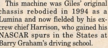 It is believed that this Lumina went on to serve Fastrack for many years as the orange and black coloured #8.