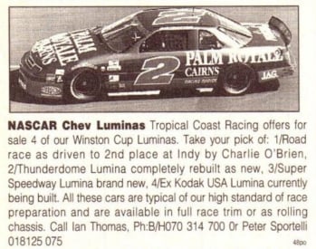 We’ve done other research this week as curiosity about certain cars got us digging around and we believe that we’ve read Motorsport News right and that Motorsport News was generous enough to not only tell readers about a Chevrolet Lumina that the Brewer’s brought, but a few editions later shown the car to readers.