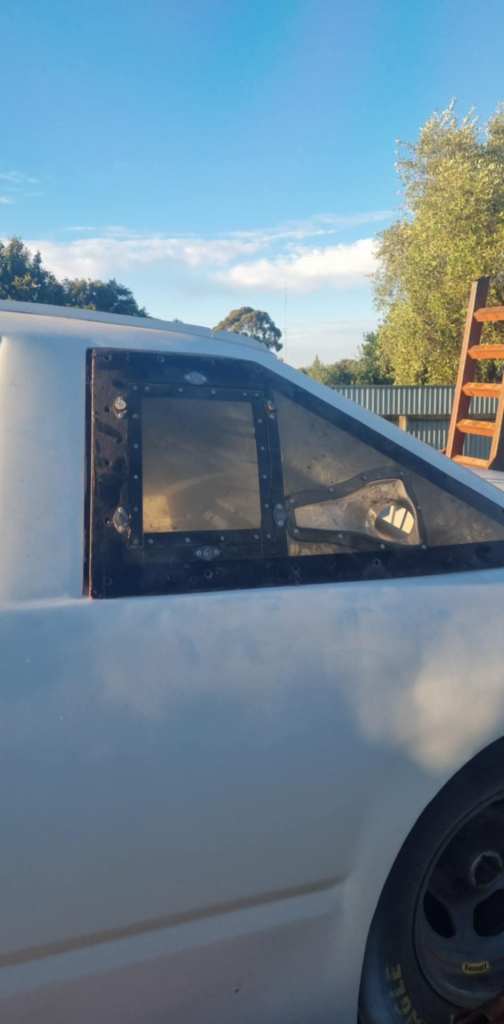 So, we looked through the dozens of John Faulkner Racing photos looking for the left-rear window, most photos didn’t go that far back with a car as most prefer straight on shots and others aren’t clear, but several of Shayne Hunter’s photos did look towards the back and more than one photo has the square in great detail and it matched.