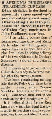 As you can see Motorsport News wrote about Eddie Abelnica buying three JFR cars, two being an Oldsmobile, so we had a 50/50 shot of getting it correct right away.