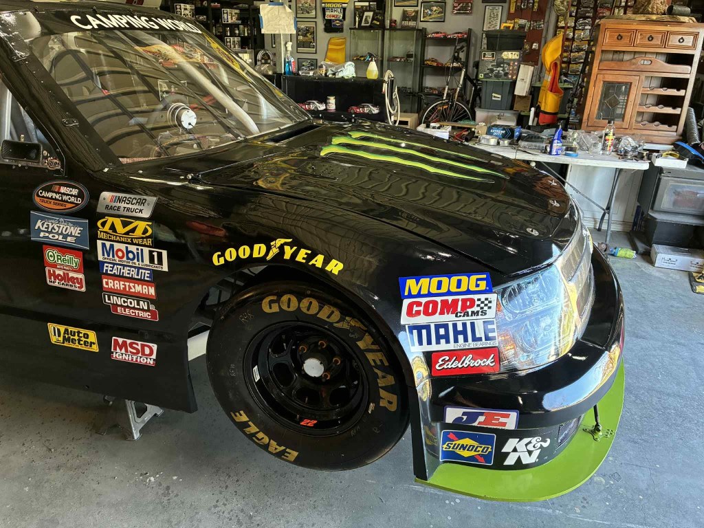 Work continues on dressing up the #4 Chevrolet Silverado and as you can see, Jeremy Gunson is doing fantastically well with turning the ex-FDNY Racing truck into the Monster Energy sponsored ex-Ricky Carmichael truck.