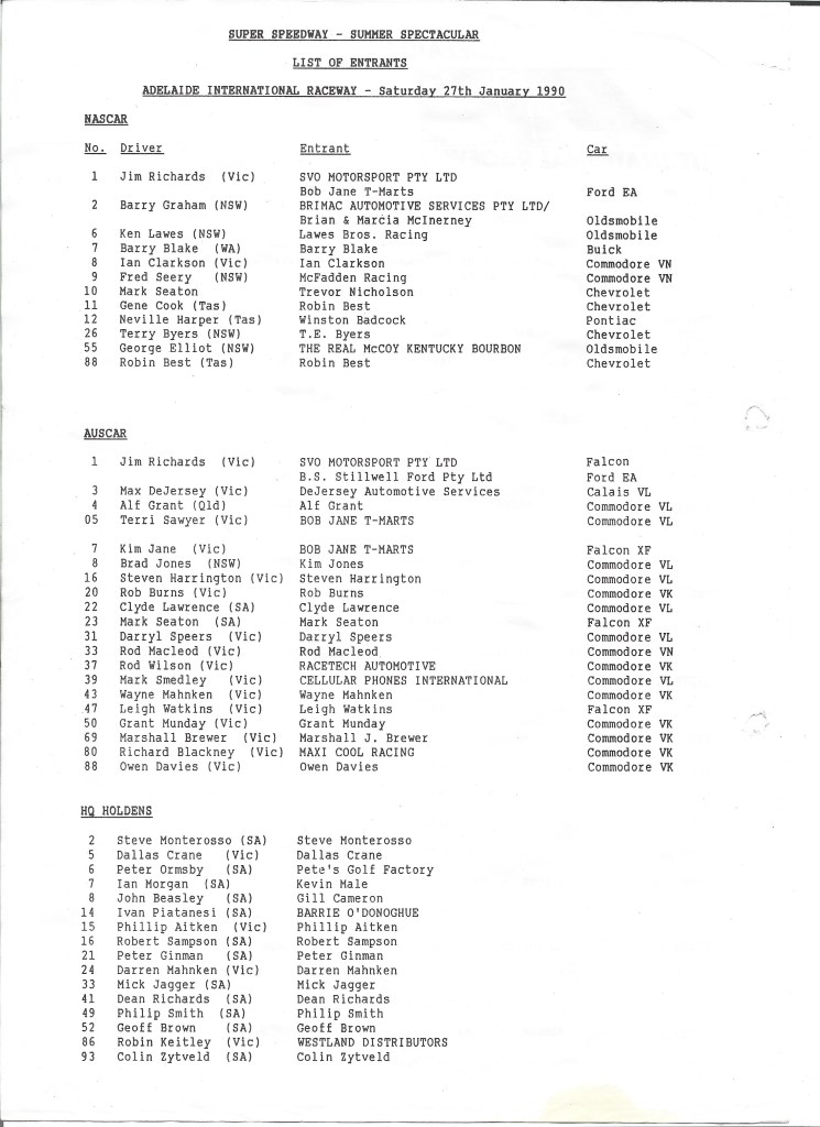 While opening a 1992/93 programme from the round at Adelaide International Raceway this week, a piece of paper fell out and it turned out to be the programme for the January 27, 1990, race.