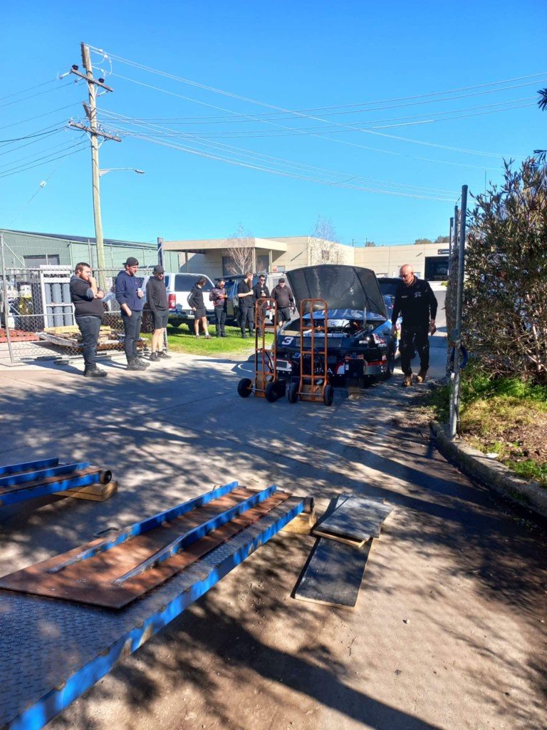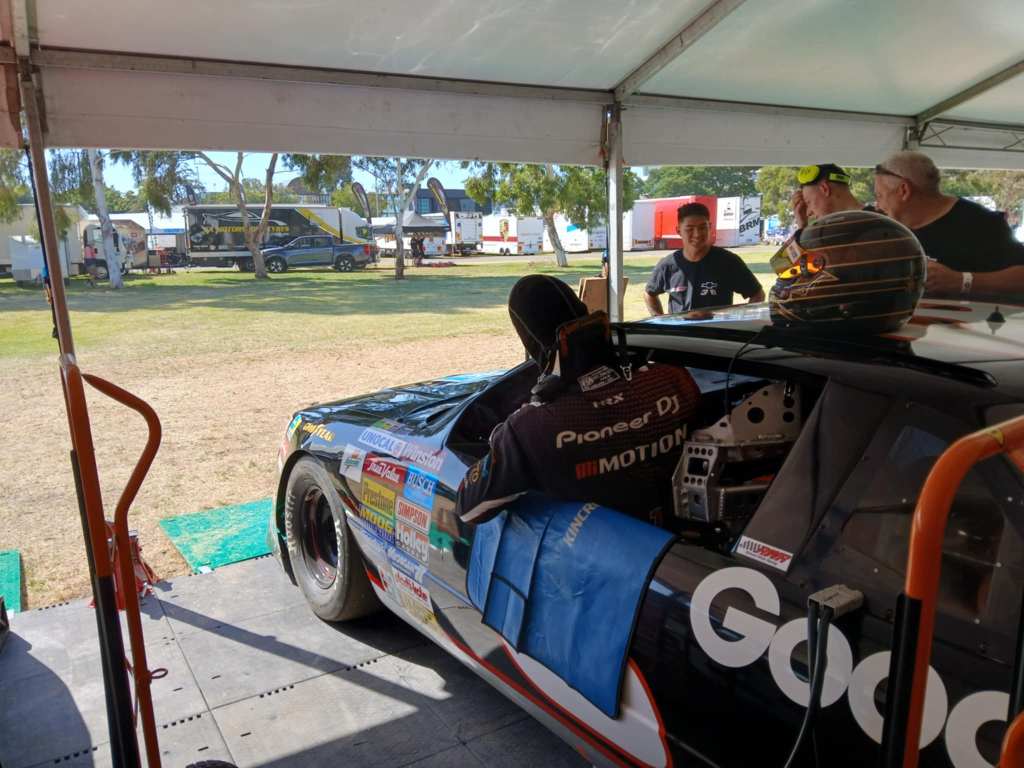 While on the way to One Raceway, the team stopped by Brad Jones Racing in Albury, the purpose of the visit was to give Brad Jones the opportunity to sit in his former ride car again, the car now known as the #3 Lumina.