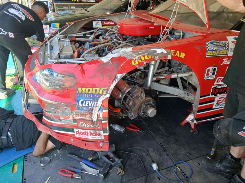 There was a mishap involving the #8 Monte Carlo, the steering wheel was not properly secured, and it came off in Scott Pye’s hands resulting in the car ending up in the outside tyre bundle of the Senna Chicane (turn 1).