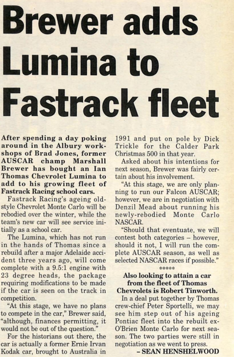 As for Elvis, we’re still searching for that car’s fate, it appears that because both Destiny and Elvis were used by Kevin, their histories and fates get mixed, we believe that is what happened when Motorsport News reported about Marshall buying a Lumina from TCR.