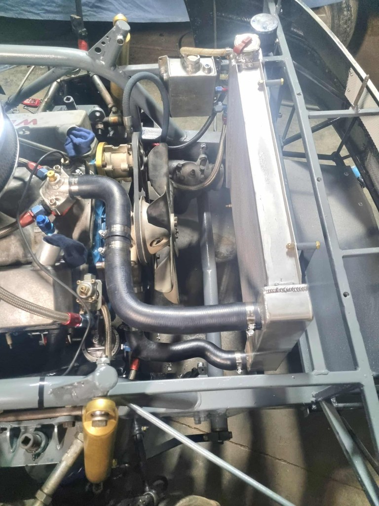 Eddie Ivermee is getting closer to firing up the engine in his Oldsmobile, the latest from Eddie is that the Radiator is in, the clutch slave cylinder is mounted and working and the power steering is plumbed up.