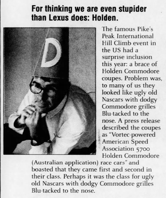 So, we went looking for these US based Holden Stock Cars and it turns out that yes there were two Holden Commodore looking Stock Cars at Pikes Peak, they were Monte Carlos rebadged and given the Holden look.