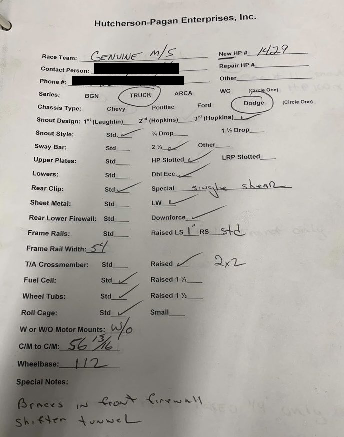The Truck’s story began in 2001, the chassis was made by Hutcherson-Pagan, its number was 1429 and the body was listed as a Dodge, the listed team was Genuine Motorsports, and it had Pennsylvania contact number.