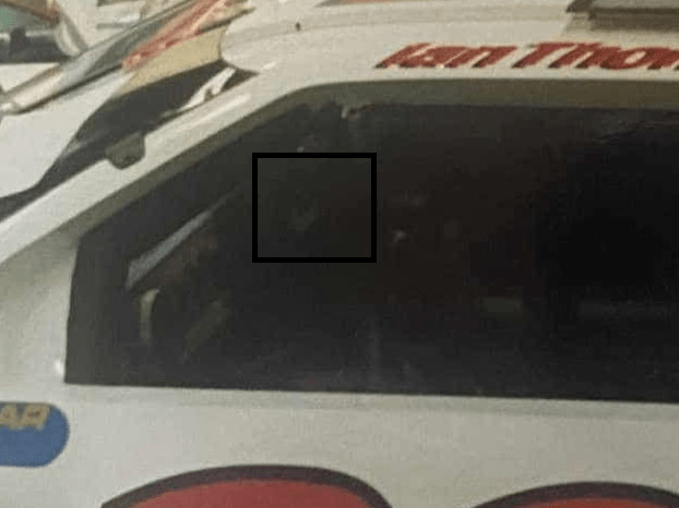 There was a square hatch in left 3/4 window and only one of the two John Faulkner Racing Oldsmobiles had this.
