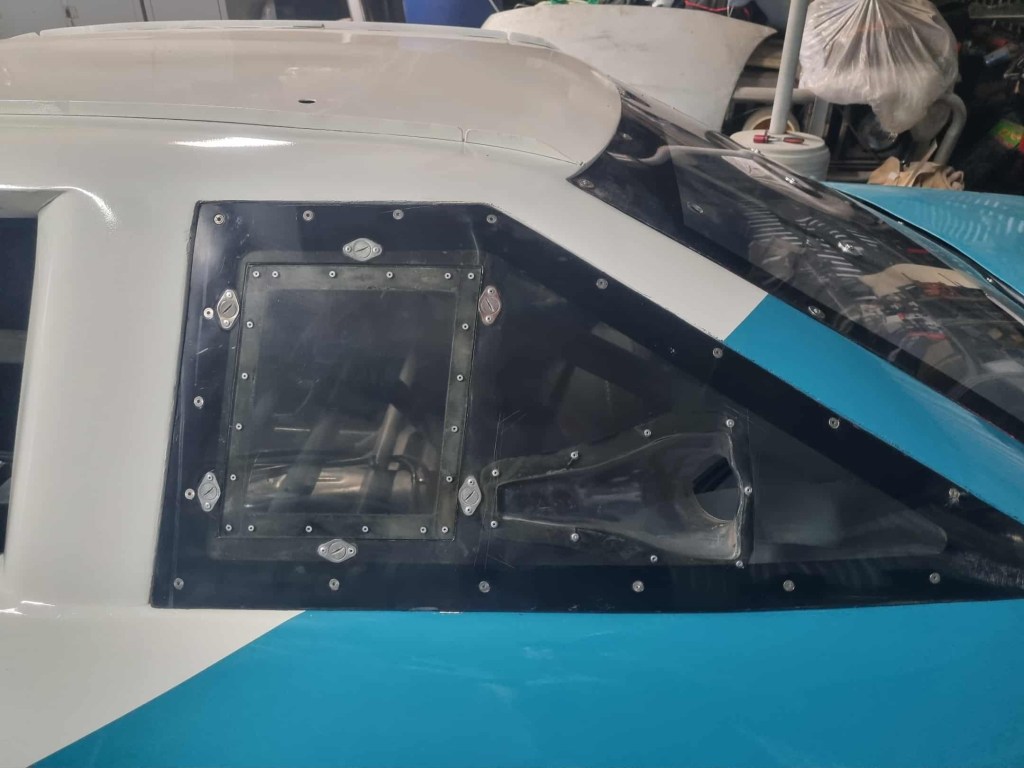 The driver side window was opened up a bit for easier access, the window net mounts were done that month allowing for the net to be put up.