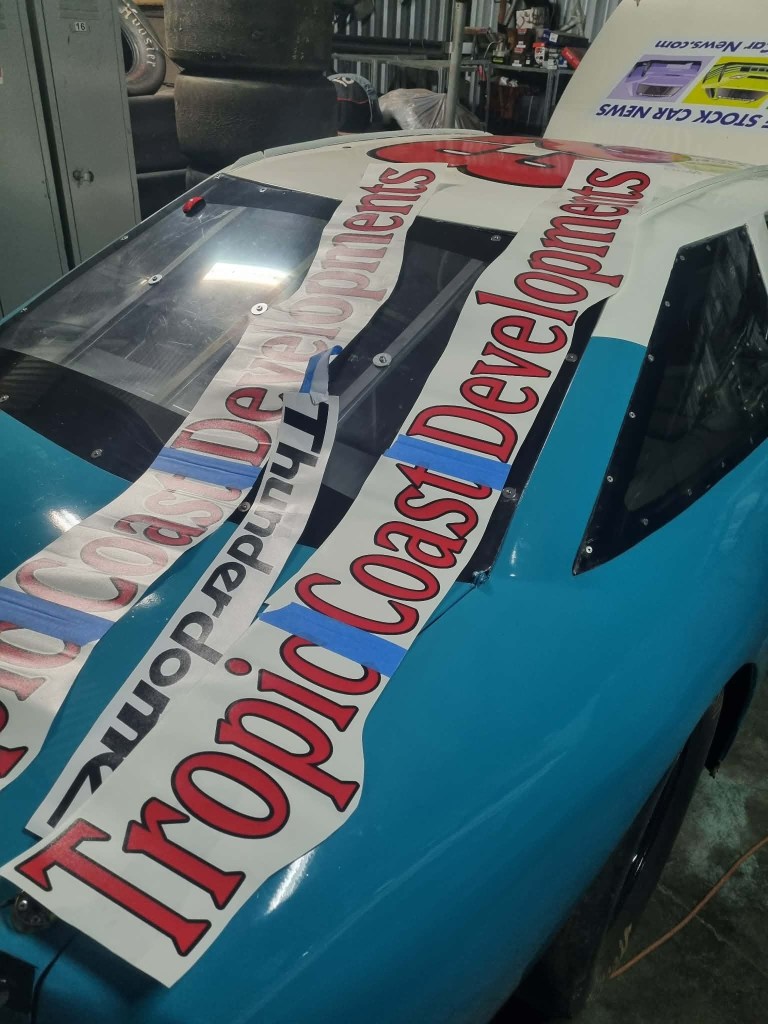 There are a few more items to take care of, one is to have Stock Cars Australia across the top of the windscreen just like the rest of the field and some contingency stickers.